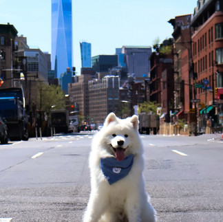Lumi, an adorable samoyed, became Instagram-famous a couple years ago after videos of him travelling around Manhattan in a backpack, including navigating the subway, went viral. I've followed him for years now, and when I found out I was doing the red carpet events for some amazing shows opening in April and would be in NYC, I reached out to his owner, Jackie. I asked if I could take some photos of Lumi while I was in the city. To my surprise and excitement, Jackie said yes! We figured out the details and agreed to meet in one of my favorite, and most picturesque places in NY. The day after I arrived in the city, my mom and I went to the West Village where we met Lumi and Jackie.